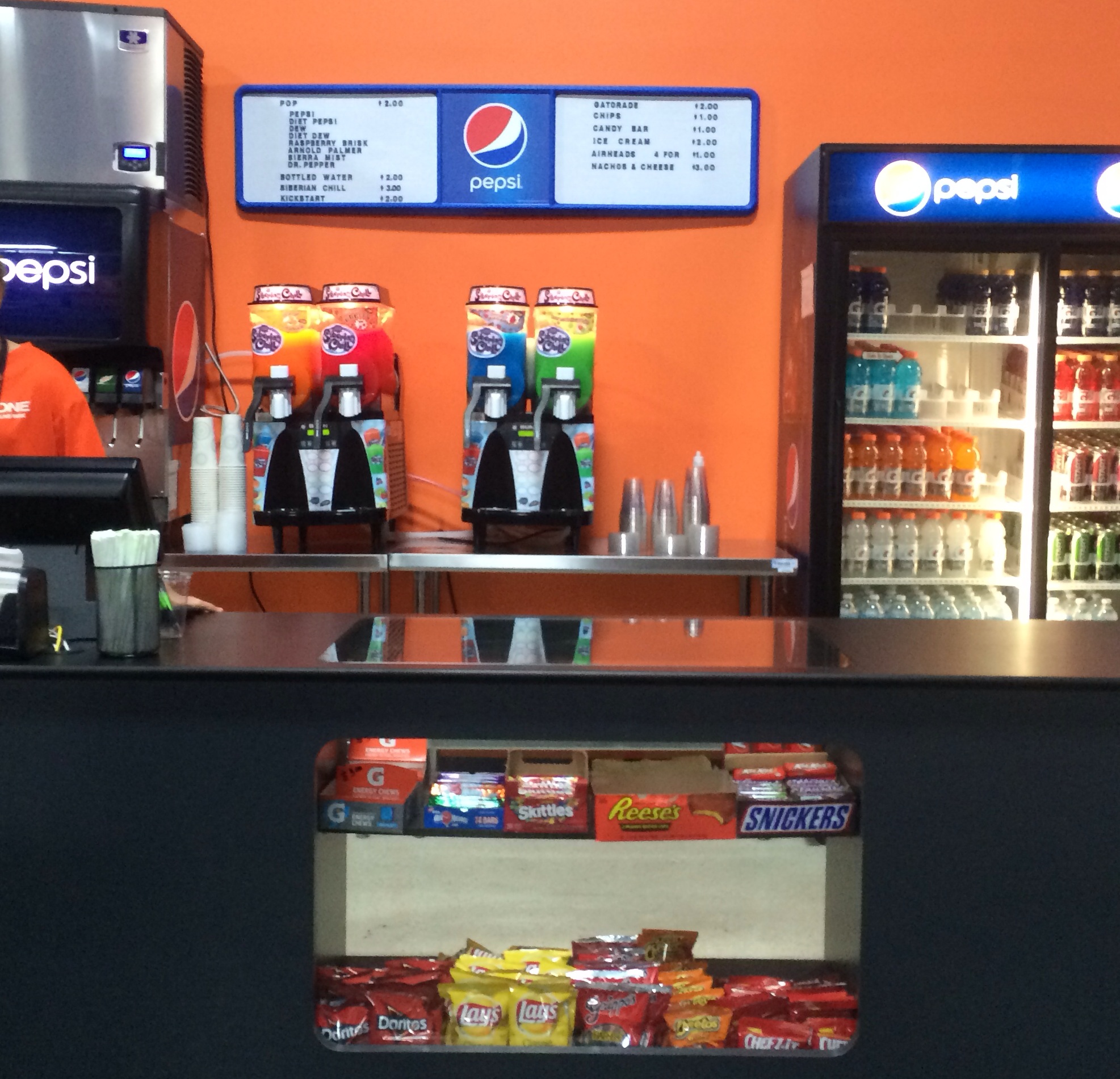 Can you see from this photo taken in August 2014 the trash that is being offered for eat and drink? Aggressive color additives and refined sugars are available in massive quantities.. #wheresthefruit #wheressparklingwater #wheresthechocolatemilk Can this be really happening???? This is what is being offered at a place where fun exercise and children are rampant? Really???? I protest. #pleaseofferhealthyfoodskyzone #ushouldbespanked