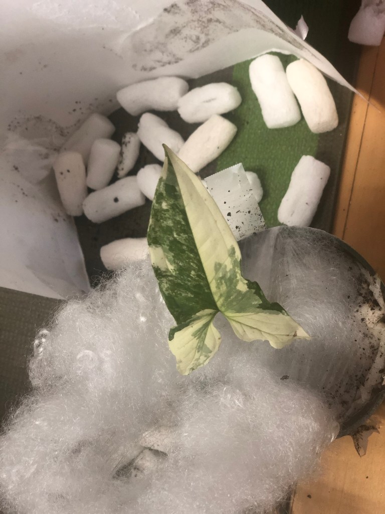 I even tried the plant mail. I received a syngonium albo variegata (It has just sprouted a new leaf, see photos). Unpacking the plant mail was an experience. It was well done and the plant was perfect. The amount of plastic used in the packaging materials was heart wrenching. I didn’t know what to expect and had hoped to learn a bit about sending cuttings via mail. I wonder if the plant community does it similarly or if there are more sustainable options being used.